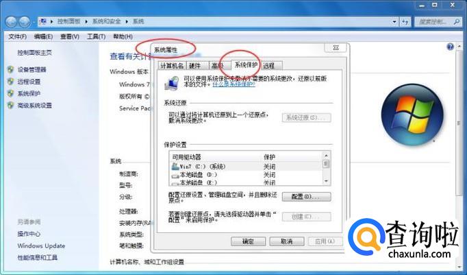 在弹出的“系统属性”窗口中,切换到“系统保护”选项卡,如下图所示: