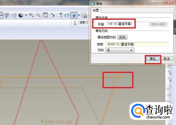 然后笔者在基准面中选择“TOP面”作为草绘平面,