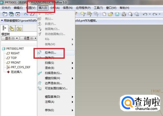 然后在其弹出的子菜单中点击“拉伸”(或者直接点击软件右边工具箱中的“拉伸”图标。),