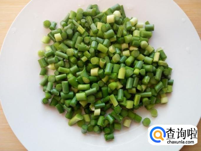 蒜薹收拾清洗干净,控干水分,切成小段。