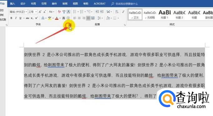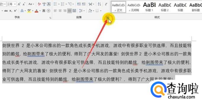 左键选中我们需要调整段落文字,点击“段落”按钮。