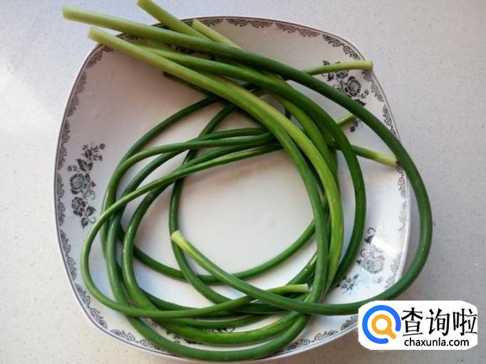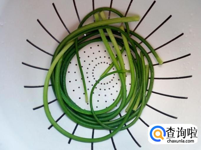 蒜薹掐去两头,用水清洗干净,控干水分。