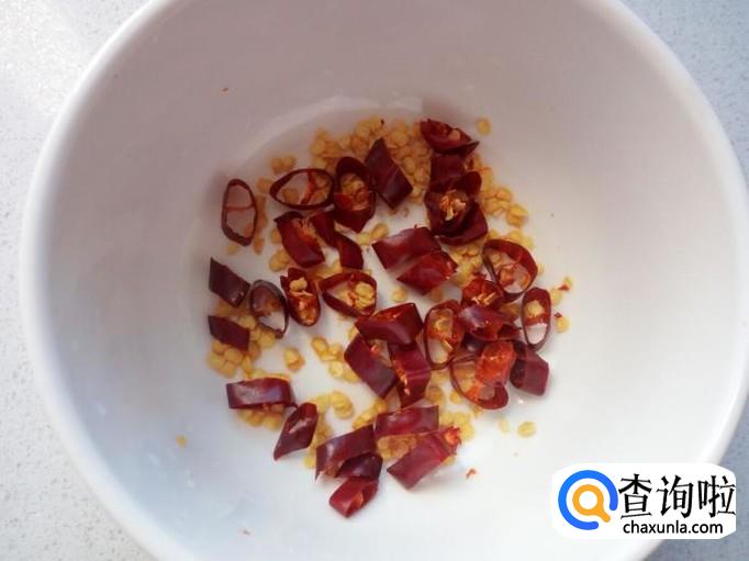 红干椒用水清洗干净,控干水分,切成小段。
