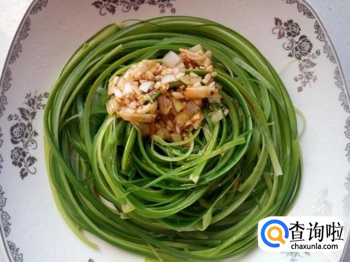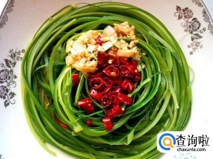 凉拌手撕蒜薹,是把蒜薹焯水后,用手把蒜薹撕成丝,再放入调料调拌而成。口感清香爽口,风味独特,是一道美味可口的下饭菜。下面介绍一下凉拌手撕蒜薹的家常做法。