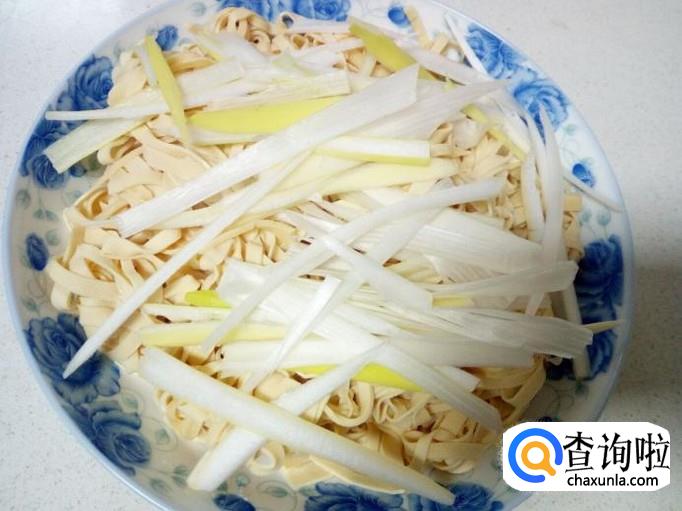 把切好的葱丝放在干豆腐丝上面。