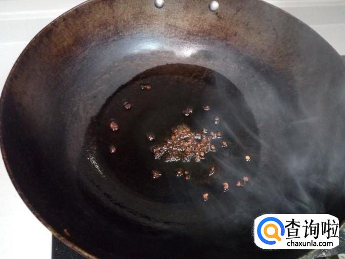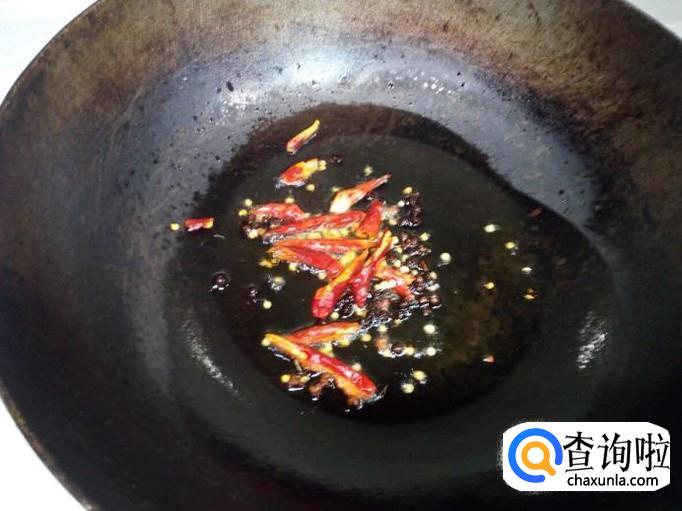 锅放入油加热,油热后放入花椒炝锅。