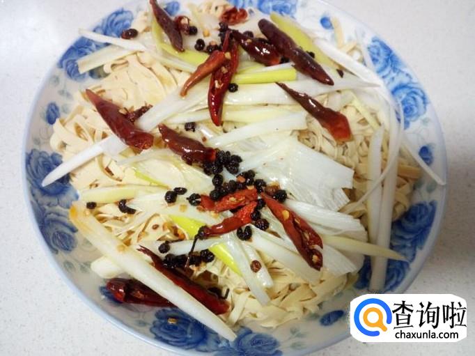把榨好的花椒,辣椒油浇到干豆腐丝上就可以了。