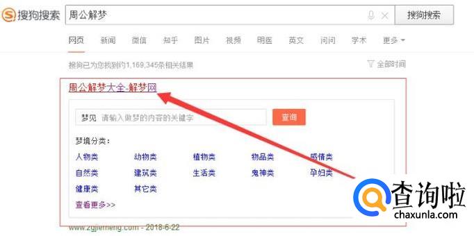 在搜索栏中输入周公解梦,接着按下回车。在搜索结果中找到周公解梦官网,并点击进入。