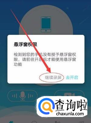 在新弹出的提示中点击“继续录屏”即可,如图所示。