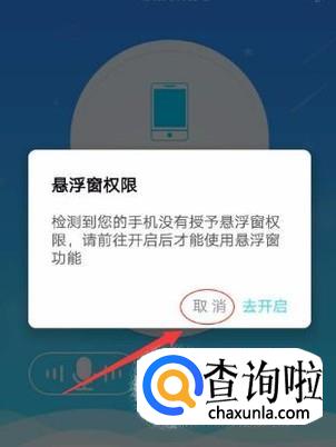 下载并安装完毕之后,打开软件,屏幕上边会出现悬浮窗,点击“取消”即可,如图所示。