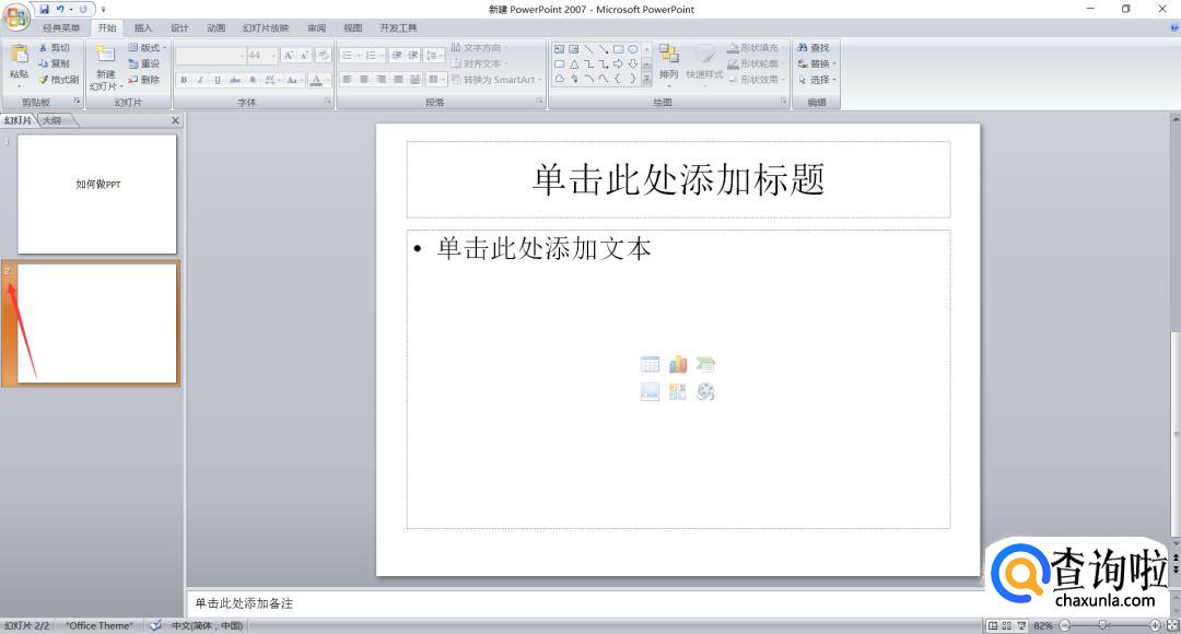 可以看到新建的页面有【2】的编号,这就是刚才创建的新一页幻灯片。