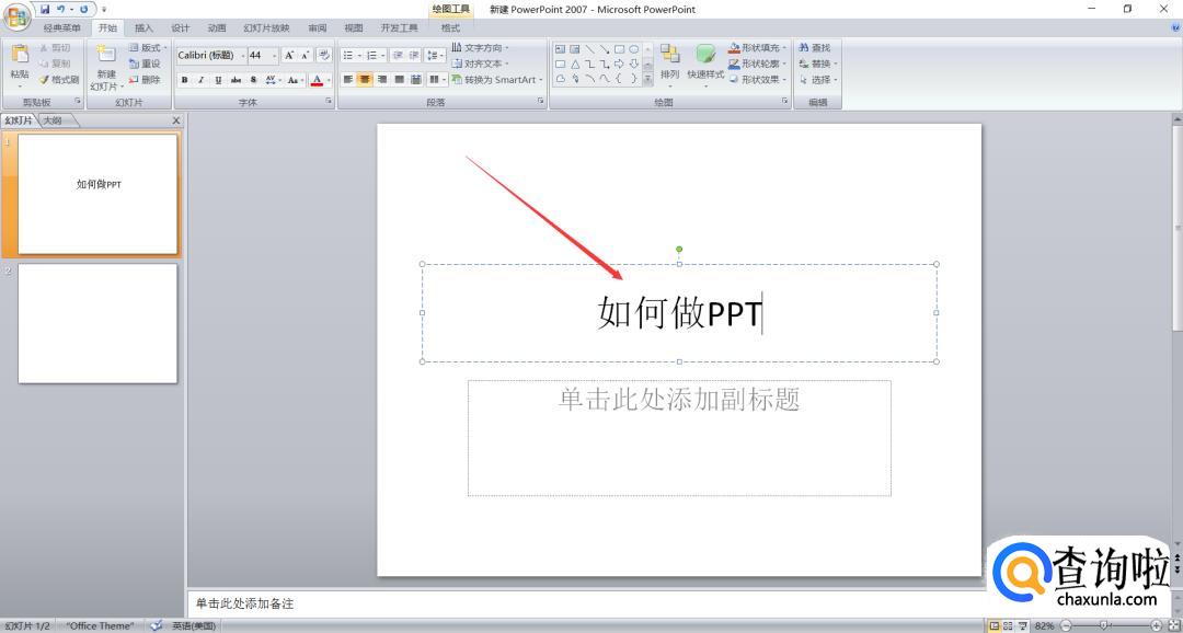 根据提示,单击提示添加标题的位置,我们可以根据我们PPT的内容添加上一个标题。
