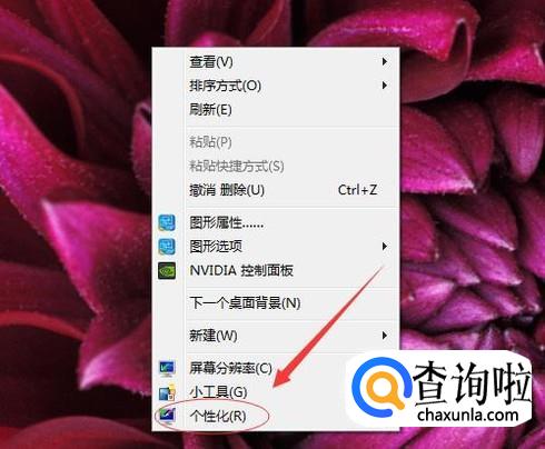 首先,直接在桌面上点击鼠标右键,这个时候我们可以看到出现了很多功能键,点击最下面一个“个性化”。