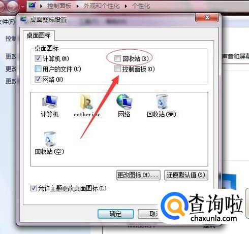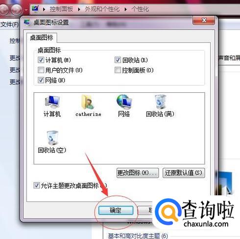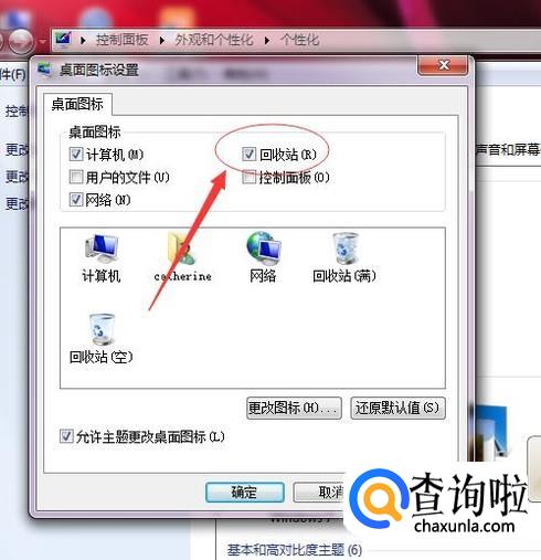 可以看到我们选择的桌面图标只有“计算机”和“网络”,并没有选择“回收站”。小编在这里告诉大家,其他的桌面图标也可以在这里 添加,方式和添加“回收站”一样。