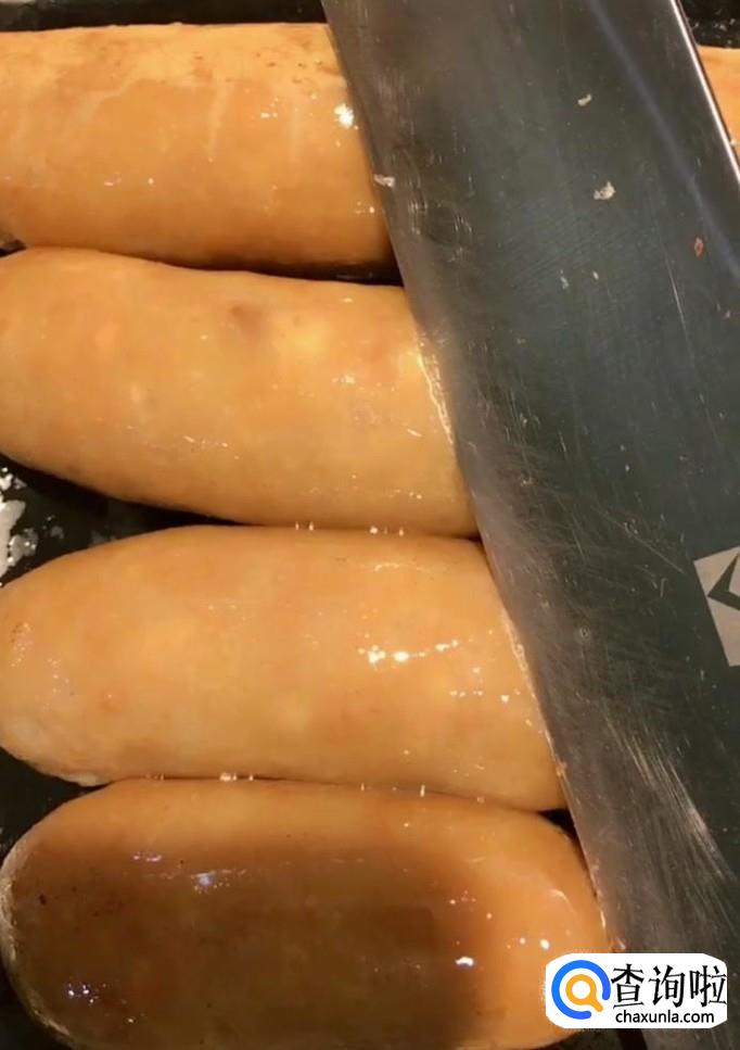 最后美味的米粉肠就制作完成啦!用刀切成块就可以享用啦!