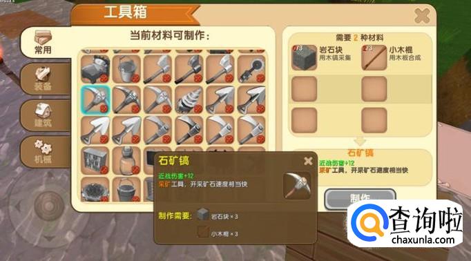 挖取铁矿石之前,我们需要制作一个石矿搞,这样挖矿的速度才快。