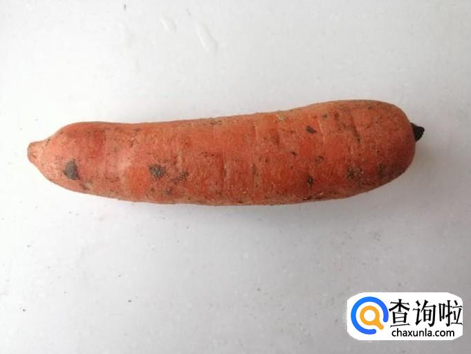 早晨起来取一根稍小点的胡萝卜,用清水洗净,有时胡萝卜外皮不光滑时,以防洗不干净最好去皮,我这是去包皮切掉两头待用。