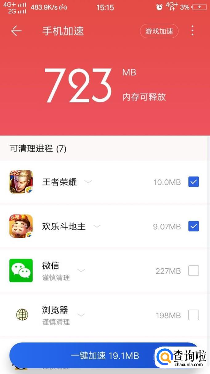 紧接着系统就会扫描出可以释放的垃圾,我们再点击下方的一键加速。
