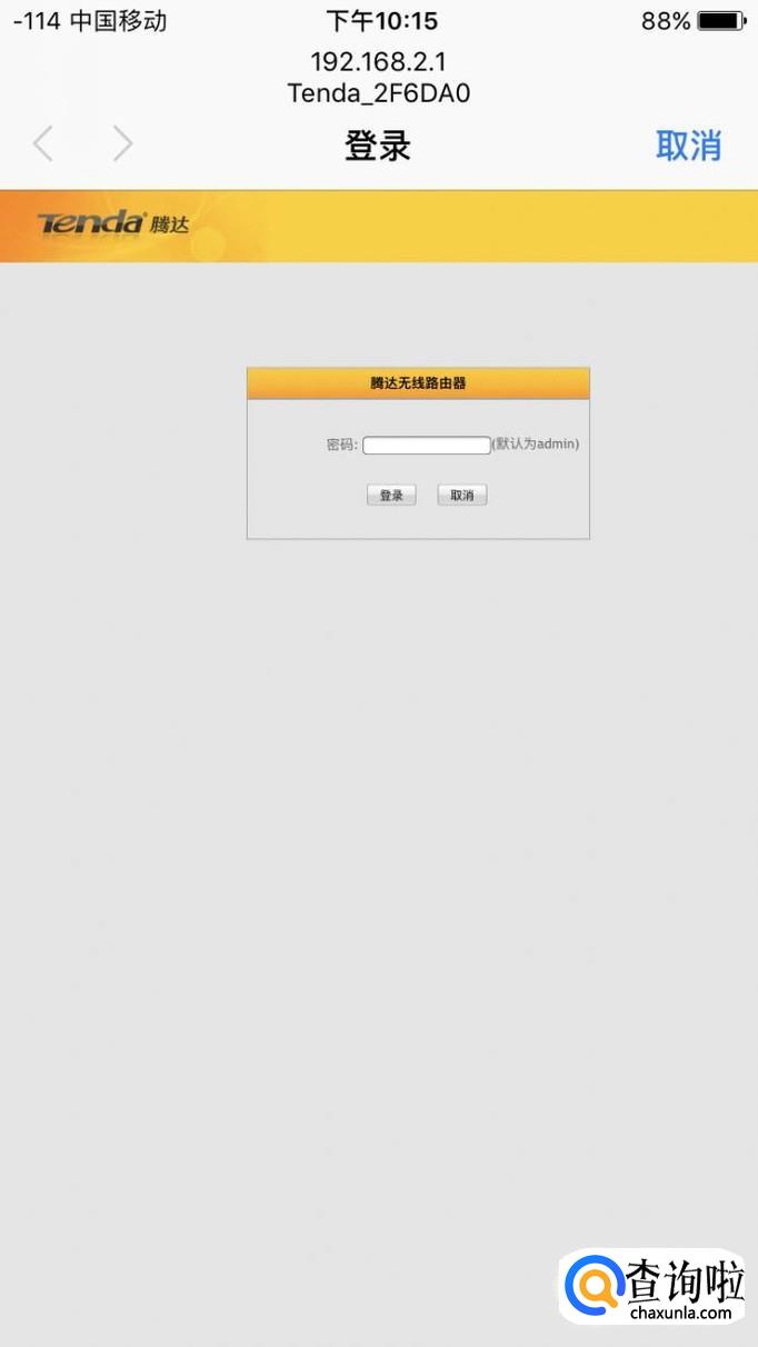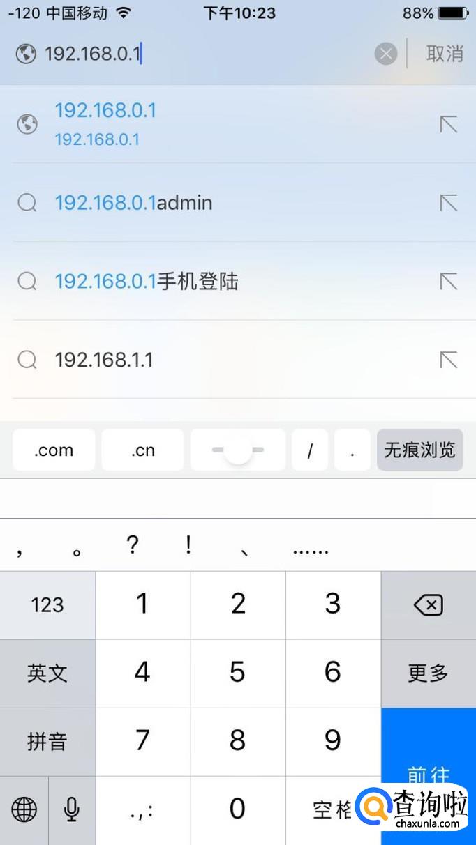 首先打开手机浏览器,在浏览器网址处输入192.168.0.1