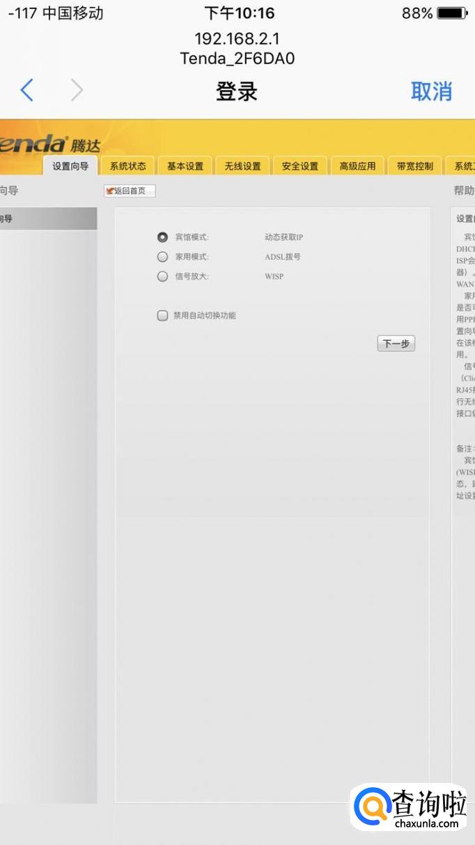 然后就会进入路由器设置页面,我们输入admin登陆路由器