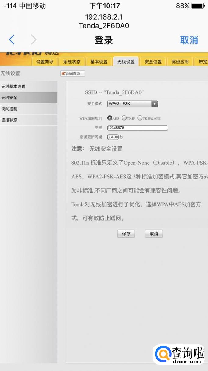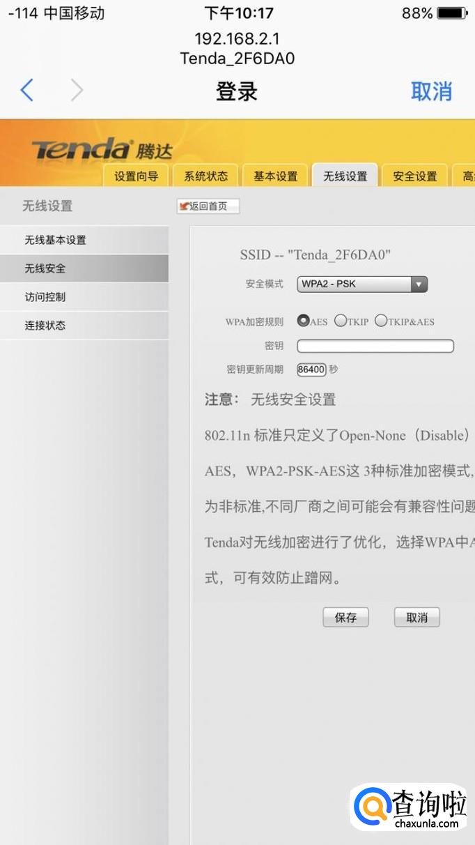 在无线安全的页面的密匙处输入我们的新密码,点击确定即可修改密码