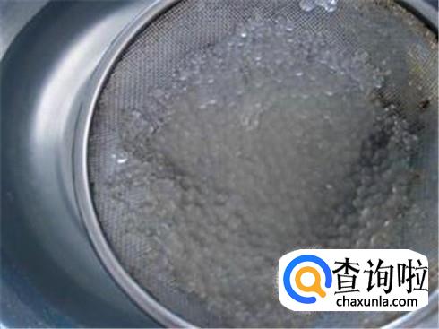 把煮好的西米放进冷水中浸泡一下,这样的西米吃起来特别的爽滑。浸泡好了之后,捞出来控水。
