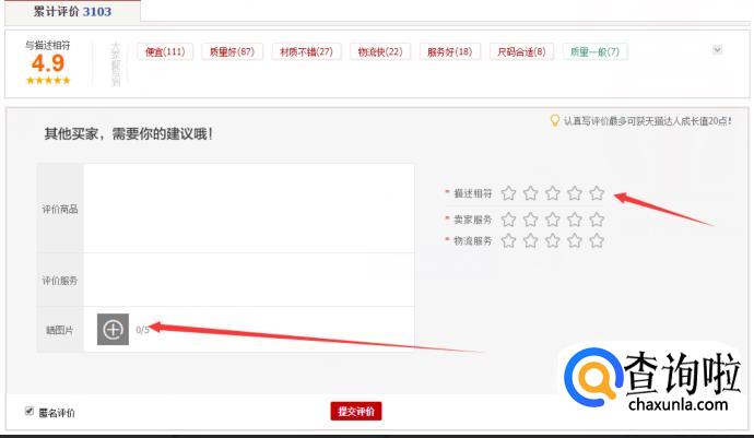 然后对于收货之后没有评价的货品进行评价,这样也能增加淘气值。