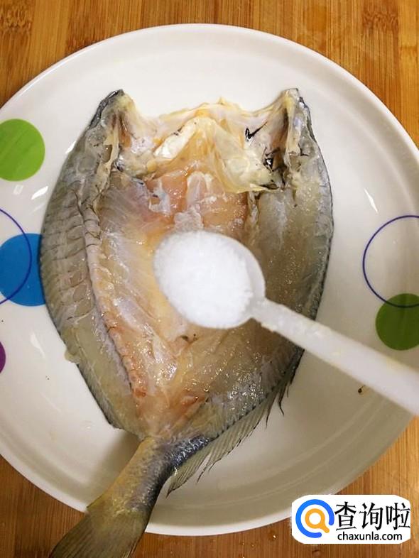 加入1小勺盐,里外抹匀,然后加入1小勺料酒,静置10分钟左右。