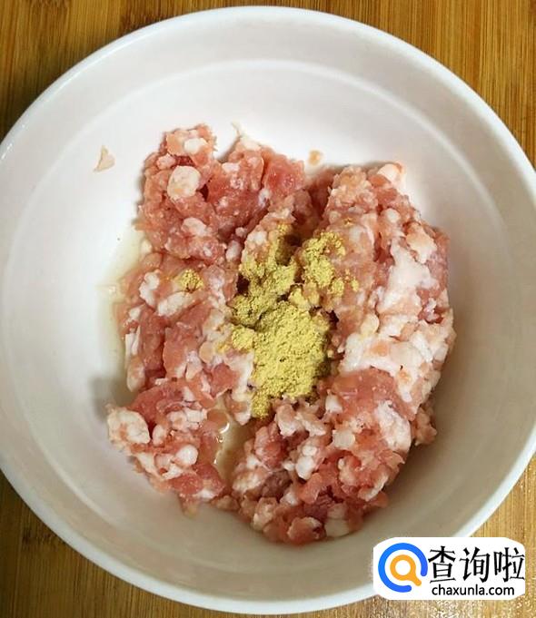 放入碗中,依次加入1小勺料酒和生姜粉,搅拌均匀。