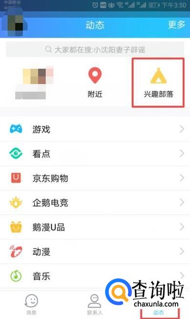 首先,我们登录我们的手机QQ,进入手机QQ后,我们点击动态,之后我们点击兴趣部落;