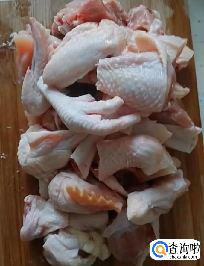 首先我们准备一只三黄鸡,将它清洗干净剁成小块备用