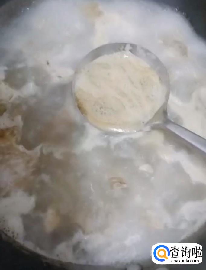接着我们再倒入适量的清水,没过鸡块鸡块,烧开以后用勺子撇掉浮沫