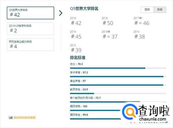 注:QS世界大学排名是世界公认最具影响力的全球性大学排名之一,主要评价指标为:学术领域的同行评价(40%)、全球雇主评价(10%)、单位教职的论文引用数(20%)、教师/学生比例(20%)、国际学生比例(5%)、国际教师比例(5%)