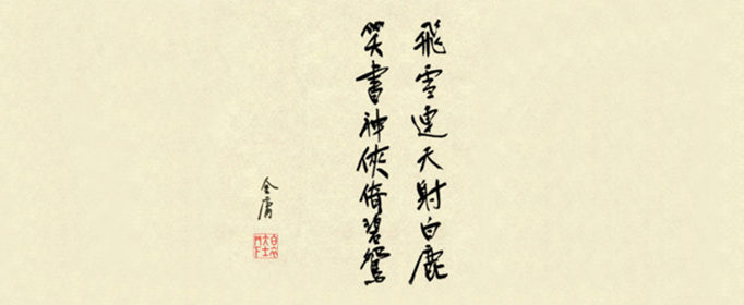 熟读金庸小说的人们很容易知道,这幅对联,是用金庸的十四部武侠小说书名的第一个字连缀而成的。事实上,这幅对联非常具有比喻意味,可以概括金庸、巴金、鲁迅的某些共点。