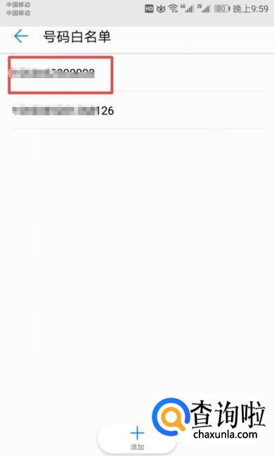 之后我们看到有个勾选了,我们点击选中其他的白名单号码;