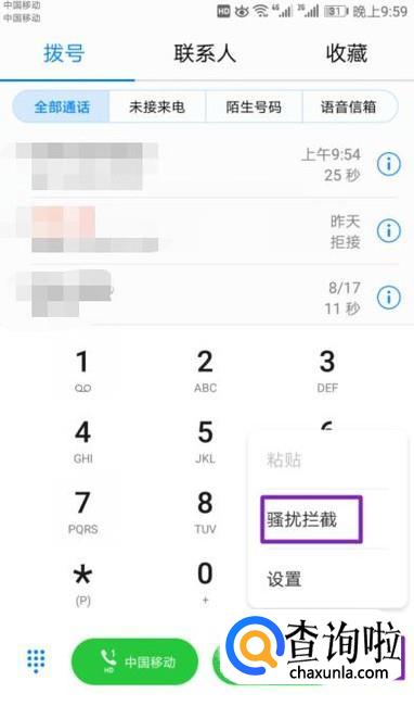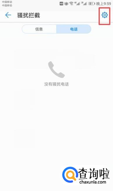 弹出的界面,我们点击右下角的设置按钮,弹出的界面,我们点击骚扰拦截;