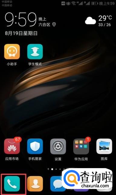 首先,我们打开我们的华为手机,然后我们点击拨号按钮;
