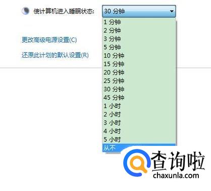 接着将计算机的睡眠时间设置为永不,如下图所示。