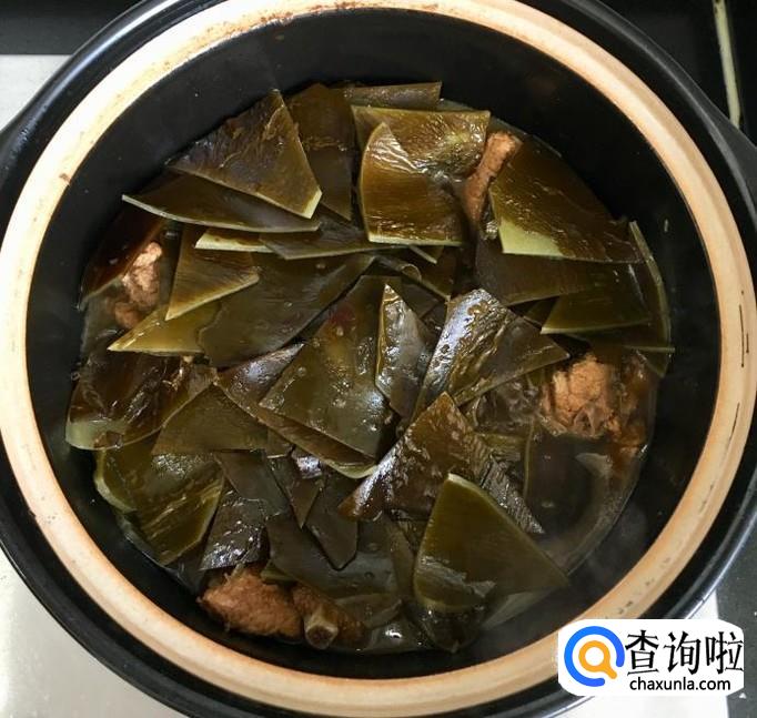 炖至50分钟左右加入适量的盐调味儿,放入切好的海带继续炖煮15分钟即可