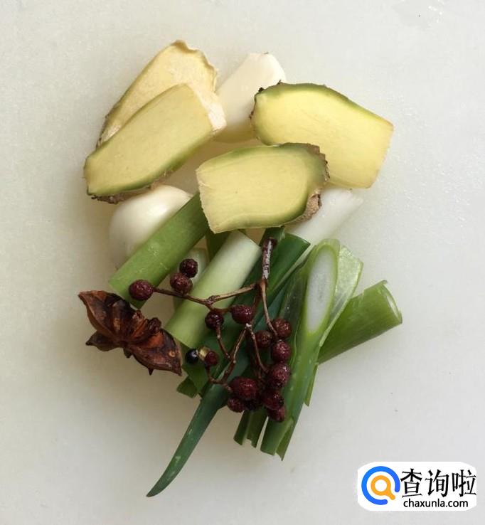 葱、姜、蒜剥去外皮清洗干净分别切成葱段、姜片、蒜片,八角、花椒清洗干净备好