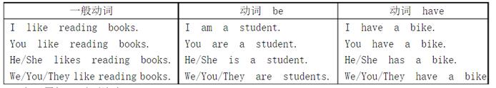 构成:一般现在时主要由动词原形构成,但第三人称单数后要加词尾-s, 另外 动词be 和 have 有特殊的人称变化形式。