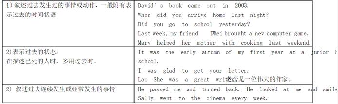 一般过去时:过去某个时间里发生的动作或状态,现在已经不再继续;过去习惯性、经常性的动作、行为。