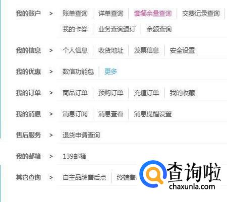 然后点击套餐余量查询,如下图所示。