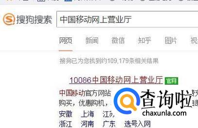 接着点击中国移动网上营业厅官网,如下图所示。
