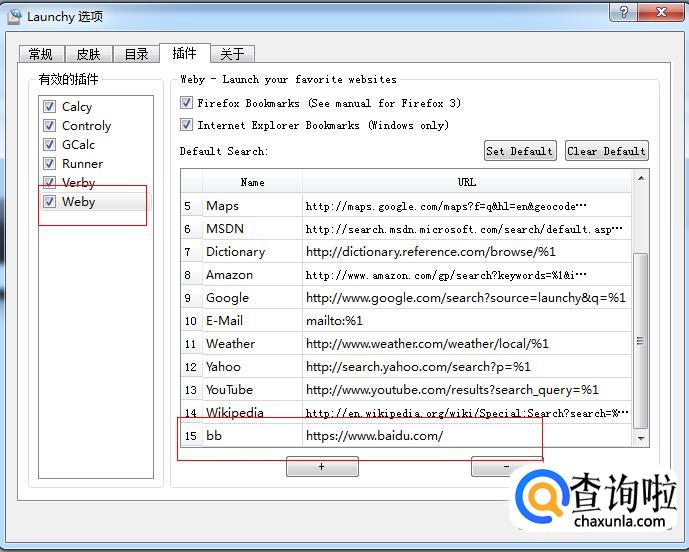 Launchy工具最强大的地方来了,集成支持的插件,重点介绍Runner跟Weby。