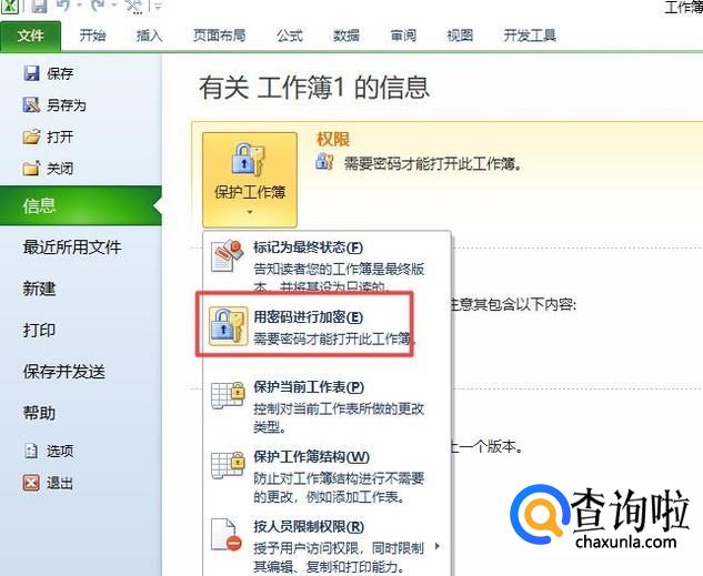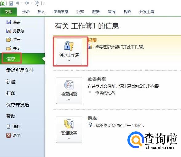 弹出的界面,我们点击信息,然后我们点击保护工作簿;
