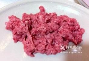将买回家的牛肉剔去筋膜,用清水洗净后用菜刀剁成牛肉沫备用。