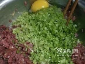 准备一个大盆,刚剁好的牛肉沫放在盆中,加入切好的小葱,适量盐,再打入一个鸡蛋搅拌均匀。