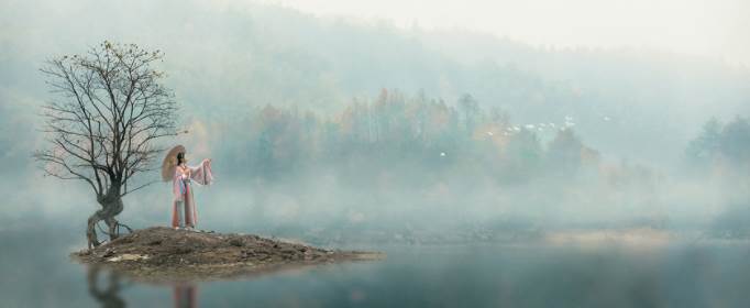 这首诗以水、芦苇、霜、露等意象营造了一种朦胧、清新又神秘的意境。早晨的薄雾笼罩着一切,晶莹的露珠已凝成冰霜。一位羞涩的少女缓缓而行。诗中水的意象正代表了女性,体现出女性的美,而薄薄的雾就像是少女蒙上的纱。她一会出现在水边,一会又出现在水之洲。
