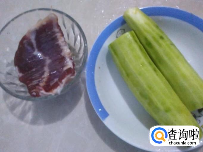 把丝瓜削皮干净,瘦肉准备好。
